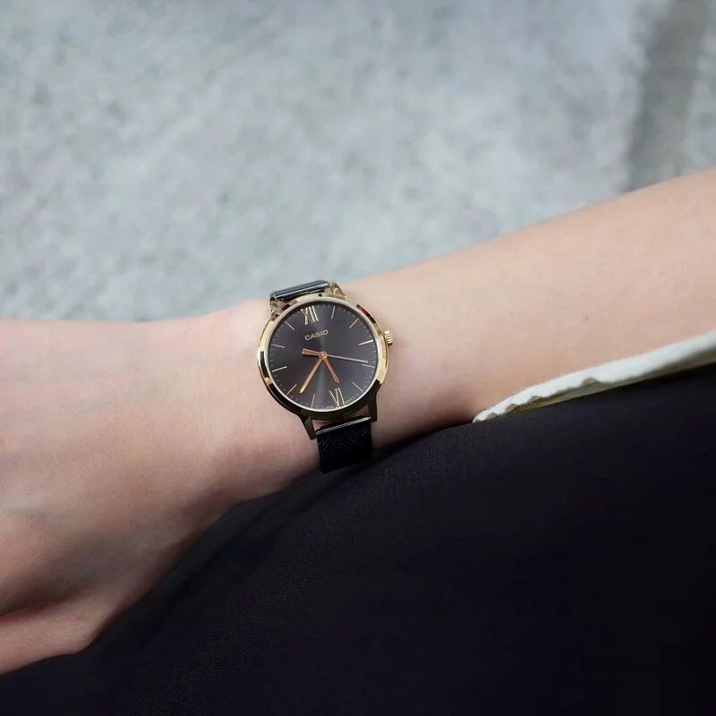 Casio LTP-E157MGB-1B 32mm Analog Watch Mesh Strap